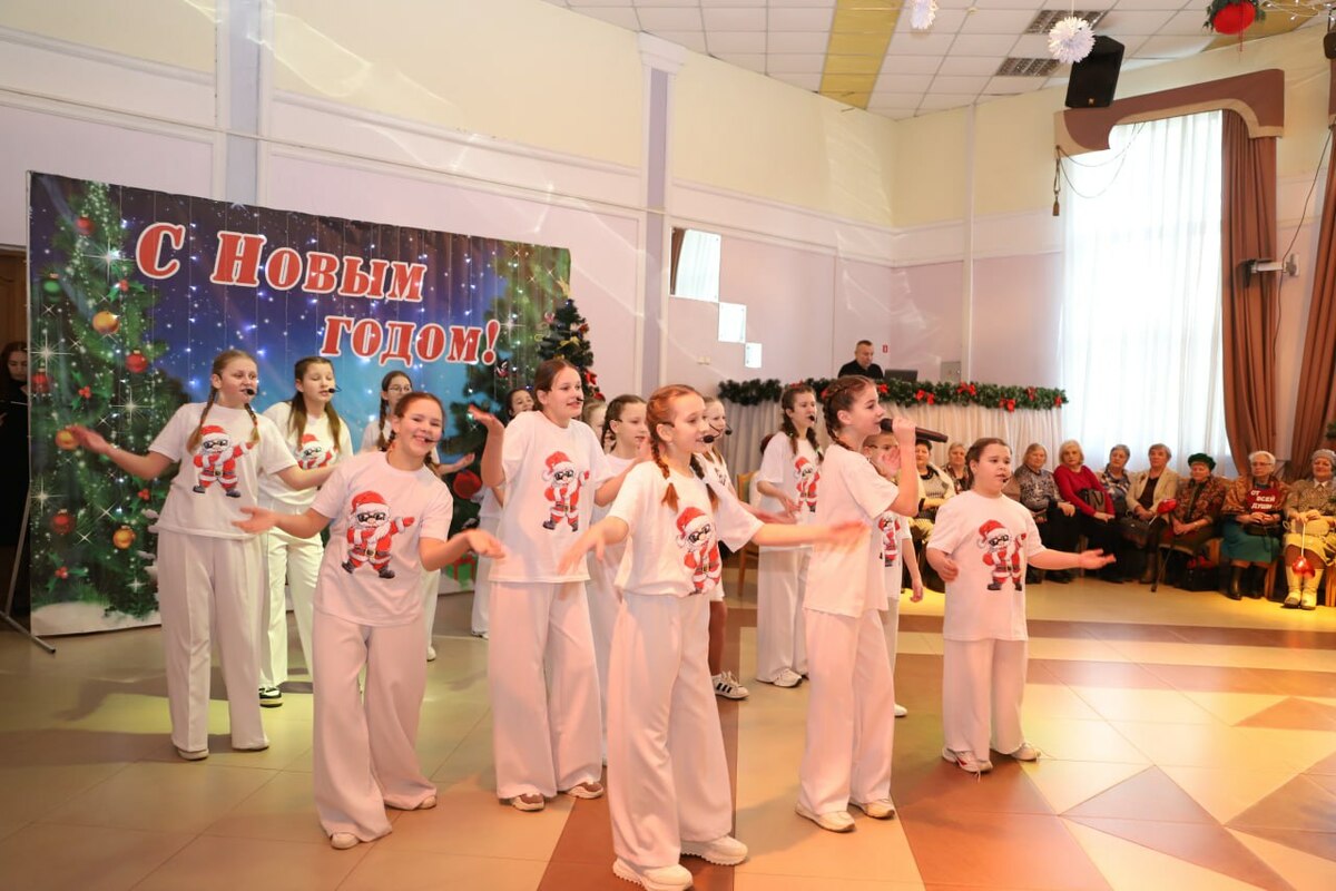 Настоящим украшением торжества стали хороводы и танцы возле новогодней ёлки, а также тёплые подарки и добрые пожелания от Деда Мороза и Снегурочки, которые создали для всех участников настроение настоящего праздника.